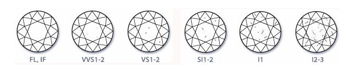 Most inclusions cannot be seen by the naked eye, so when a diamond is being graded for clarity it will be under a very powerful magnification usually 10 times larger, so that an accurate grade can be given. Below is an easy to read chart that clearly indicates the grades, the description, the clarity explanation and the diamond quality :