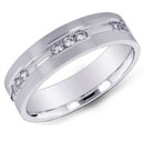 Channel setting is used to set round diamonds. Setting round diamonds into channels leaves small spaces closest to the metal bars of the channel. By choosing round diamonds, the designer creates a clean line of stones, yet one with greater brilliance than is possible with baguettes. Channel setting is also used when there is no center stone at all. The placement of baguettes around an entire band is a beautiful choice for a wedding band, one that goes well with a matching ring set with a diamond solitaire. A variation of the channel set is called the bar channel. Here, the metal plates rise to top level of the stone, and so are visible between the stones. This gives a slightly different visual effect, and can be very striking if the contrast between the metal and the stone is significant.